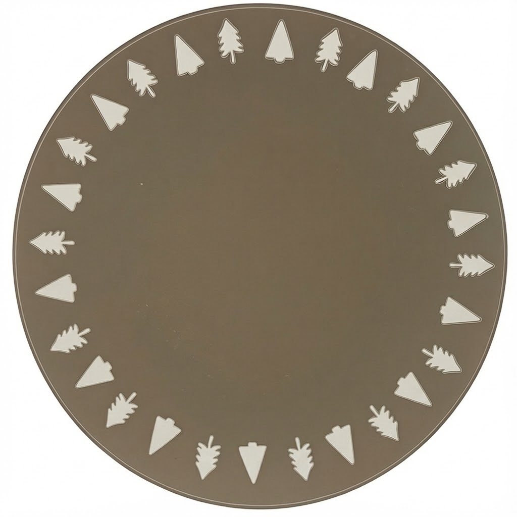 This elegant stone-toned plate features a beautifully arranged ring of minimalist white tree motifs, blending modern design with a warm holiday spirit. Its clean, symmetrical border adds a touch of festive sophistication without overwhelming your tablescape — perfect for both everyday use and seasonal hosting.